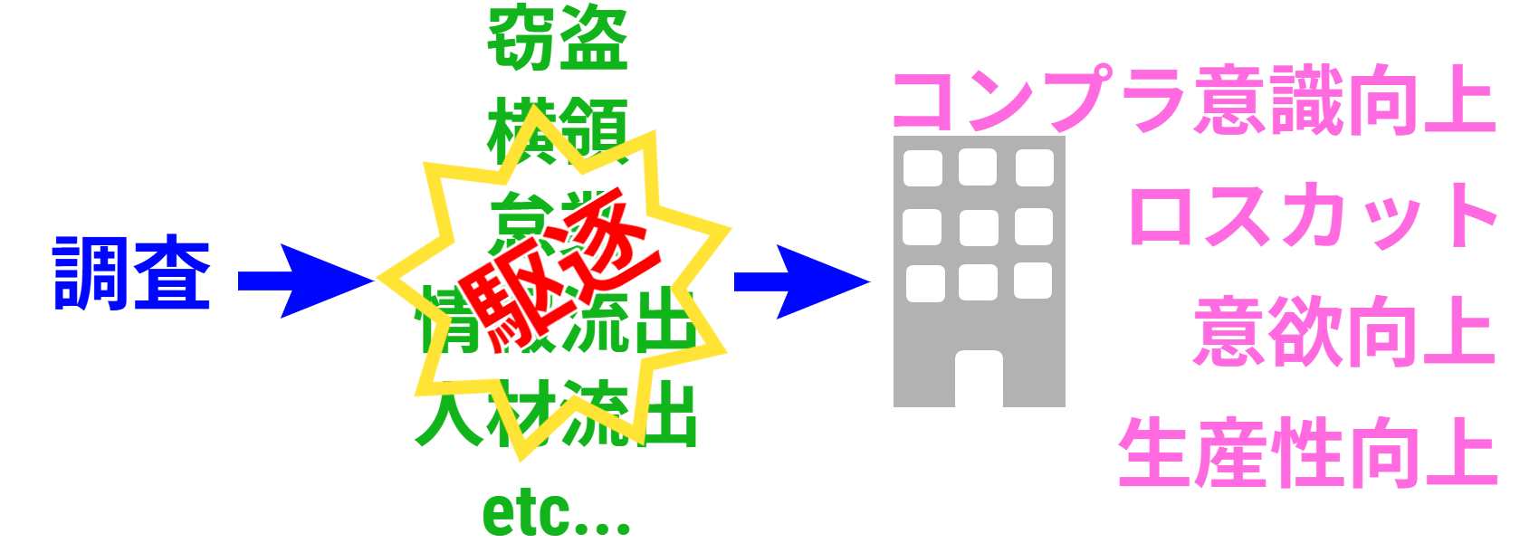 | 組織運営上の大切な注意点の1つとして、“不正は伝染する”というものがあります。 従業員の不正が“公然の秘密”状態となっており、それを知らないのは事業主のお客様や一定以上のポストにある方だけという状態はとても危険です。 不正に尾ひれがついて従業員の間で噂となっていたり、怠業の手口が社員間で共有されるなどで真面目な社員の士気に影響し、直接的、間接的“伝染”によって貴社の生産性に悪影響を及ぼす可能性があります。 社員同士では評判が悪い社員が昇進してしまうという人事的ミスが発生すると、真面目な社員が真面目で居続けることは難しくなります。 既に発生してしまった不正に関する調査はもちろん、特定の人物を要職に据える際の不正防圧的調査など、お気軽にお問い合わせください。 |